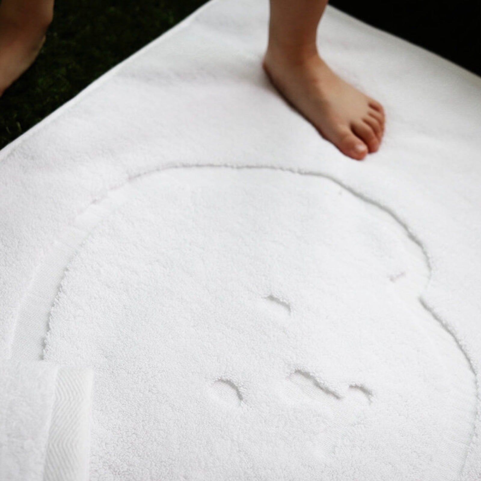 『犬の模様が入った可愛くて品質最高のバスマット』 高級ホテルや高級百貨店のみで販売?使用されている30年続くタオルメーカーが愛犬家のために新たに作ったドッグシリーズのバスマットです。1日の始まりも終わりも日常の節目に触れるのがタオルです。そんな毎日使うものだからこそ、長く大切にしたいと思えるものに価値を置いて豊かな生活を送ってほしいという気持ちから、品質もよく大切に愛着のある長く使えるタオルを使ってきました。30年のタオル製作の経験から綿の選別にも力を入れているので、良質なコットンのみを使用しており、肌にくっつかず埃もつきにくくサラッとした肌触りと使用感を実現して長いこと使用しても爽やかな仕上がりを保つことができるようにしています。雲のようなフワフワさを実現した厚みのあるバスマットは吸水力もよく毎日の使用にもおすすめです。すべすべの極細糸のマット、洗濯不要の珪藻土マットなどバスマットには様々ありますが、シャワーやお風呂から出て足を拭くのに最も適しているのは吸水力があり、洗濯をすることで常に清潔に使用できるタオル生地になります。こちらのバスマットは通常のタオル生地で使用している意図よりも太く厚く編むことでより吸水性とフワッと感をプラスしました。クリーンなバスマットですが、同色で可愛い犬のモチーフが入っているのはシンプルながらデザインの効いた犬好きにはたまらない可愛いアイテムに仕上がっています。 素材コットン100%サイズ注意事項?洗濯の際はぬるま湯か冷水で洗濯してください。熱いお湯は生地を傷める原因になります。?乾燥機を使用するとよりふわふわの仕上がりになります。